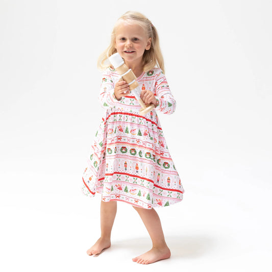 Twirly Long Sleeve Dress in Nutcracker Fair Isle