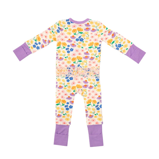 2 Way Ruffle Back Zipper Romper in California Wildflowers