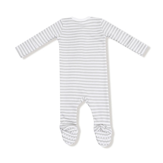 Sage Stripe Ribbed 2 Way Zipper Footie