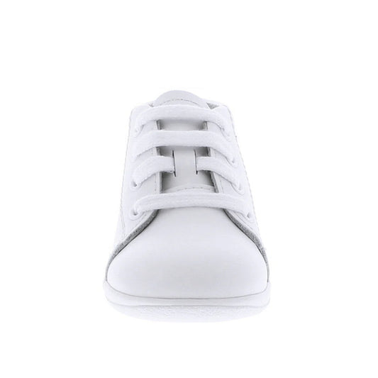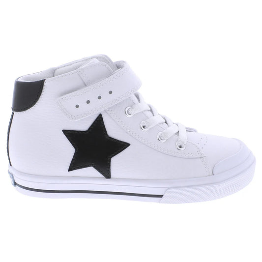 Riley Shoe in White with Black Leather