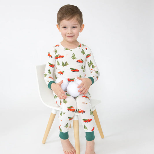 Bamboo Long Sleeve Loungewear Set in Vintage Red Trucks