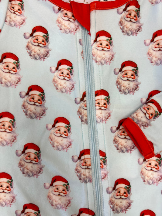 Print Footie with 2 Way Zipper in Cedar Santa Dogs
