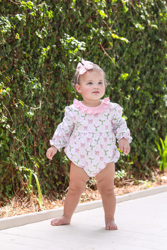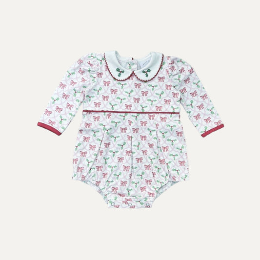 Print Long Sleeve Raglan Romper in Strawberry Candy Cane Stripe