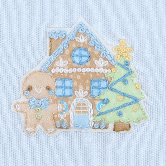Blue Sweet Gingerbread Collared Embroidered Bubble