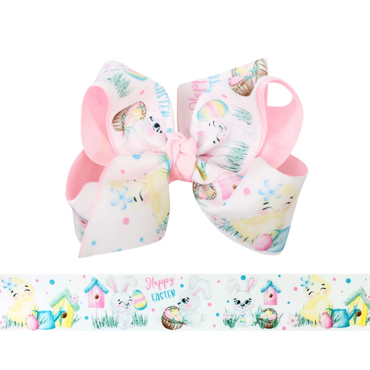 King Easter Bunny Face Grosgrain Bow with Moonstitch