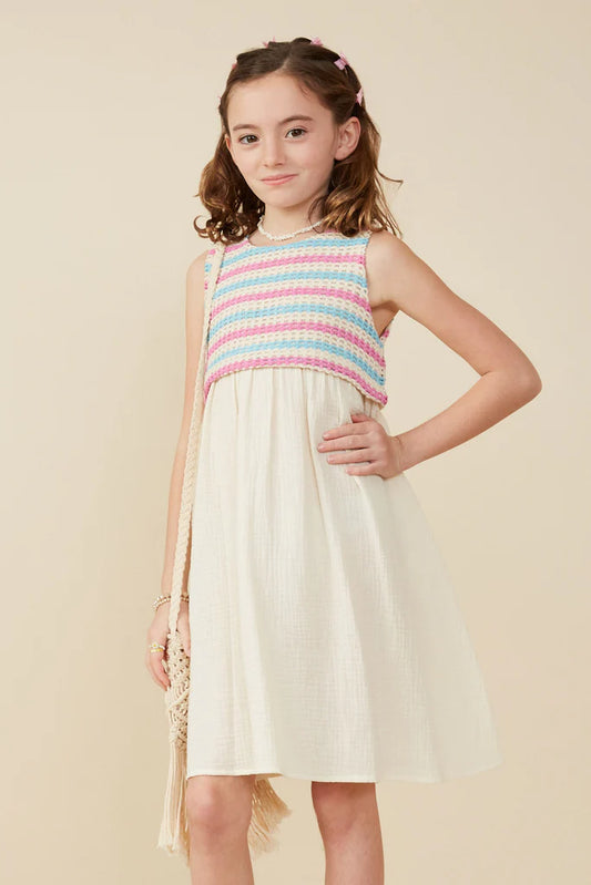 Blush Textured Stripe Tie-Sleeve Tiered Dress
