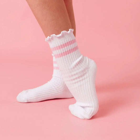 Ribbed Lettuce Trim Midi Socks in Blossom Stripe