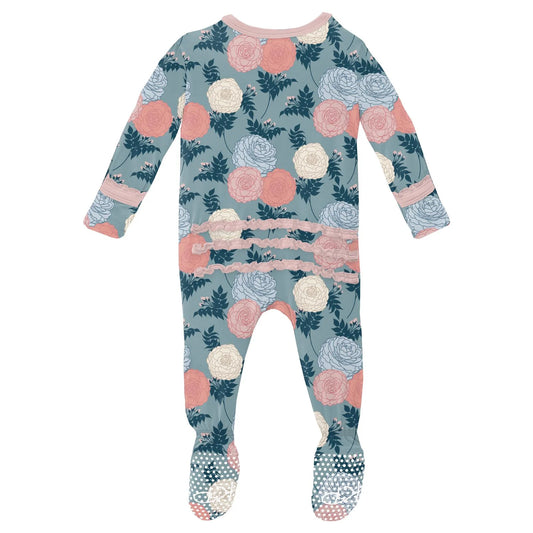 Print Muffin Ruffle Footie with 2 Way Zipper in Stormy Sea Enchanted Floral
