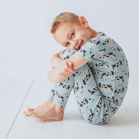 Print Short Sleeve Pajama Set in Cake Pop Cows