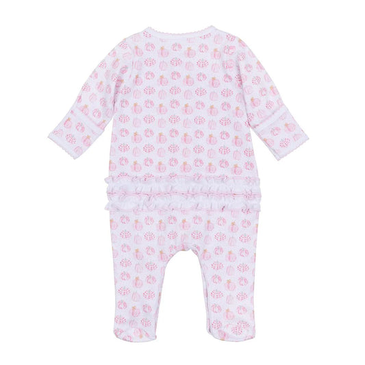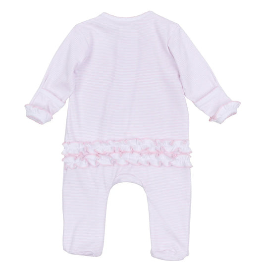 Touchdown Cutie Embroidered Ruffle Zip Footie in Pink Stripe