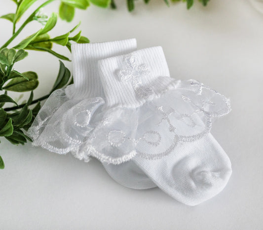 Christening Socks with Lace in White