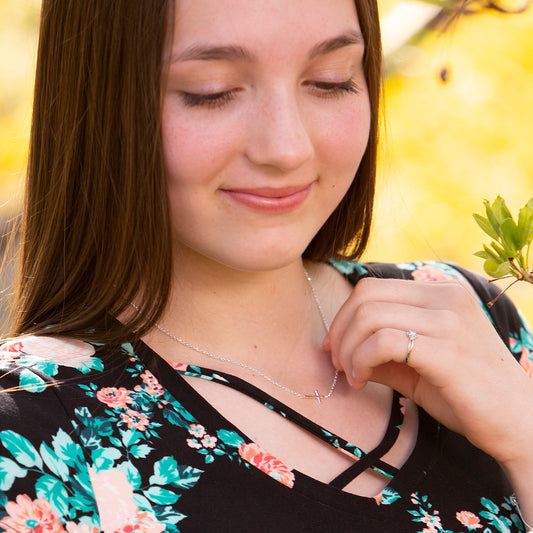 Sterling Silver Horizontal Cross Necklace