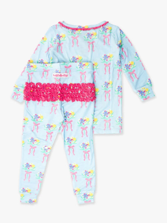 Ruffle Long Sleeve Pajama Set in Bows and Bouquets