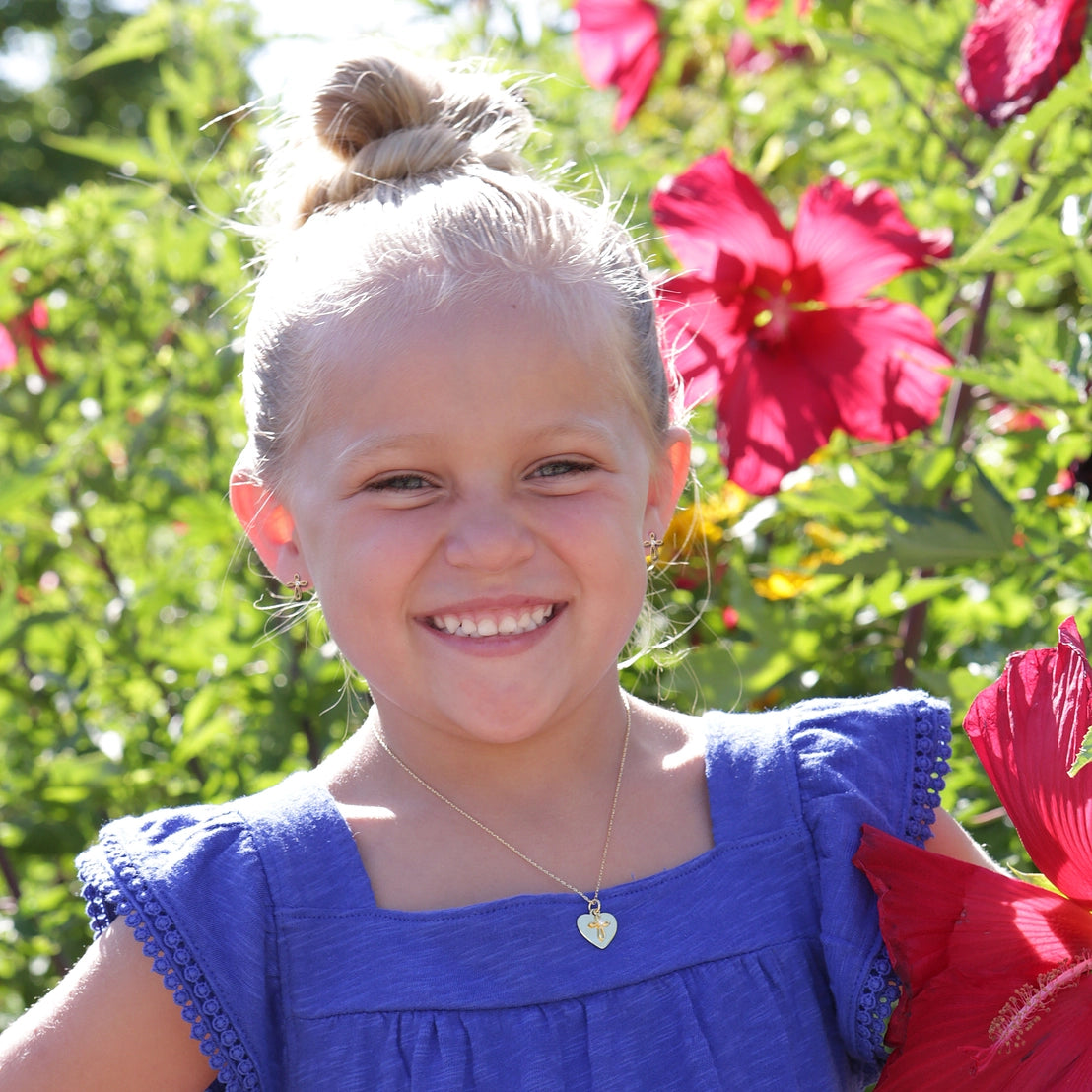 Children's 14K gold-plated (over sterling silver) infinity cross earrings for little girls. These dainty earrings have screw backs that are so nice for children so they stay secure and protect the backs of her little ears. Earrings are hypoallergenic and genuine .925 sterling silver with 14K gold plating, nickel free, and will not irritate sensitive ears. Earrings come in darling black velvet heart gift box little girls love!