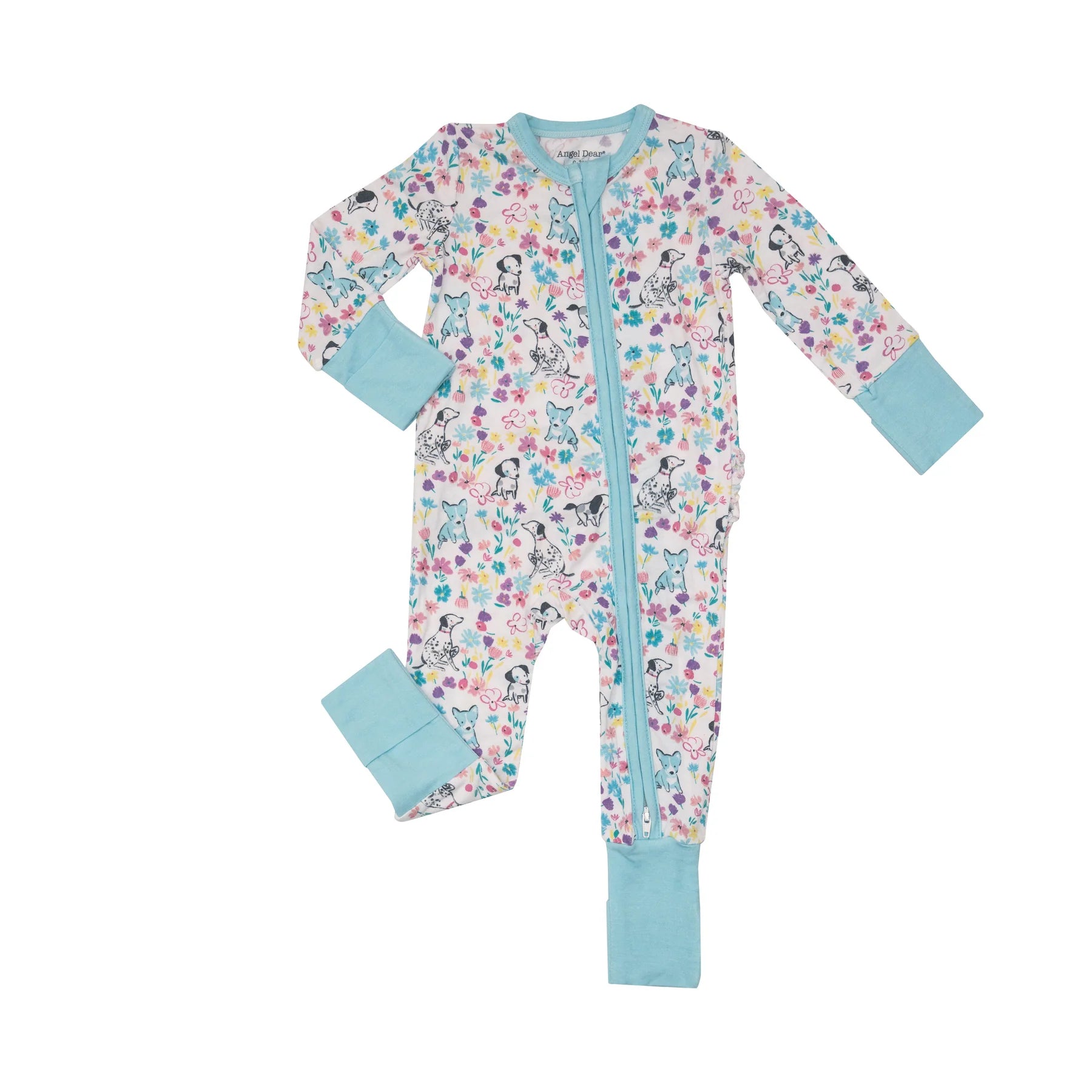 2 Way Ruffle Back Zipper Romper in Dog and Floral