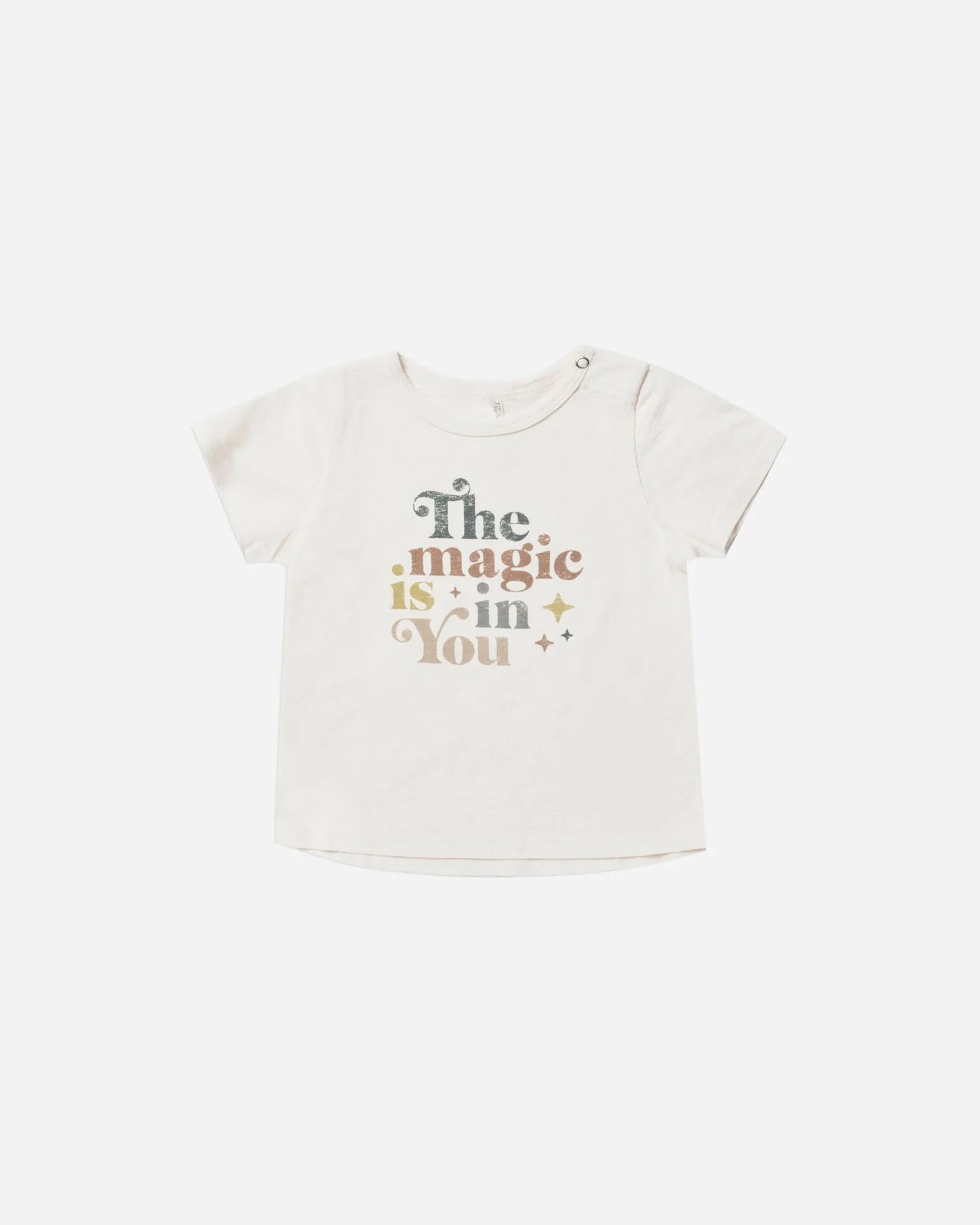 Relaxed fit basic tee made from the softest cotton jersey. Baby sizes 0-3m thru 18-24m have snaps at the shoulder for easy changing.