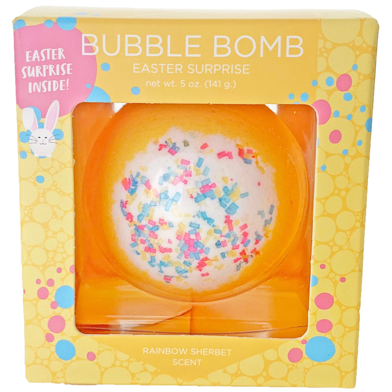 This Easter Surprise Bubble Bath Bomb is the perfect Easter Basket Filler or Gift for the kiddo in your life. Each bath bomb is rainbow sherbet scented and has an Easter-themed squishy surprise inside. This bath bomb weighs about 5 oz and is about the size of a tennis ball.
