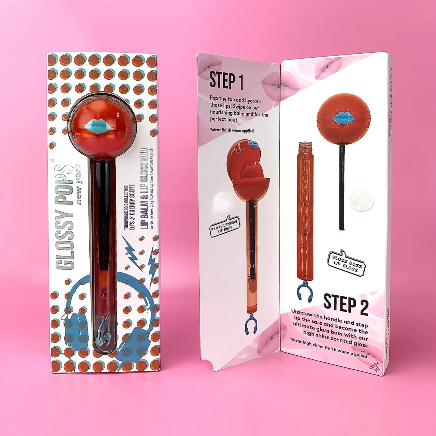 Check out our DJ'S Glossy Pop!! Lost in the music, we go into a trance that takes us to those places we dance. Glossy Pops is all about the love of music so lets embrace those time by looking and feeling our best. Flip open the top for a red tinted moisturizing cherry scented lip balm. Don't forget to unscrew the top and finish that pout with our clear and sweet scented gloss.