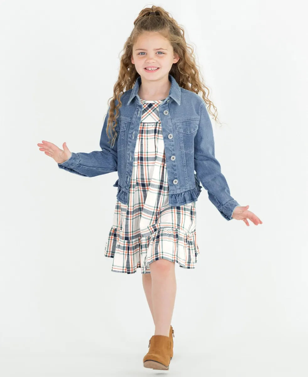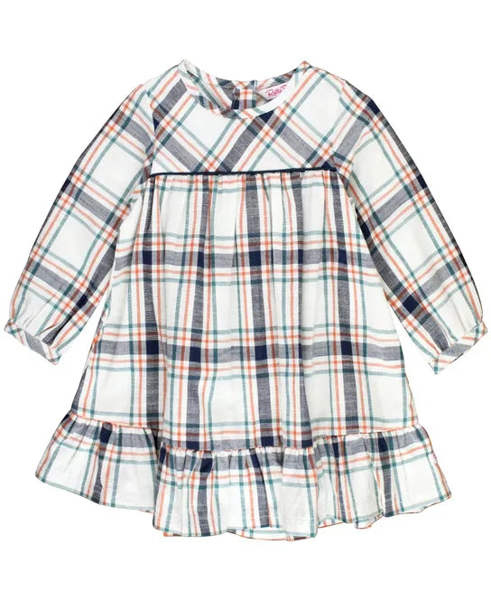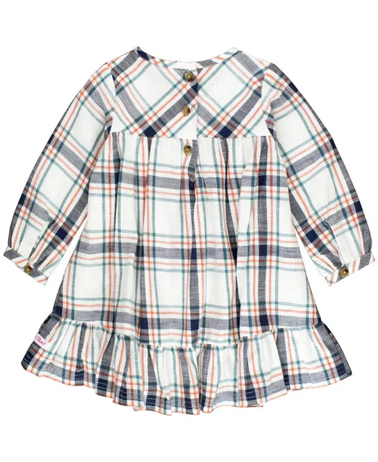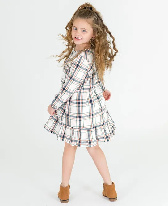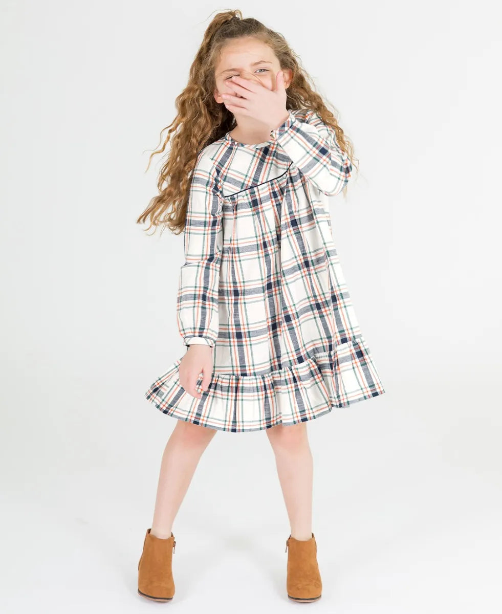 Fall Harvest Plaid Long Sleeve Ruffle Hem Dress