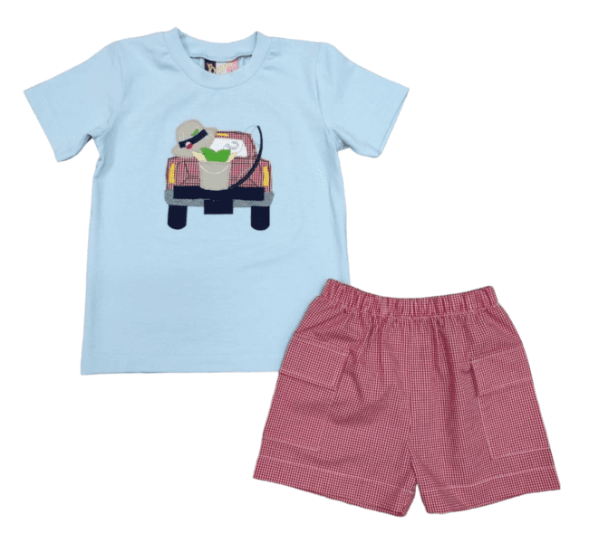 We are in love with this applique boys short set. The tee is soft and the shorts are a perfect match. This is a must have for every little boy!