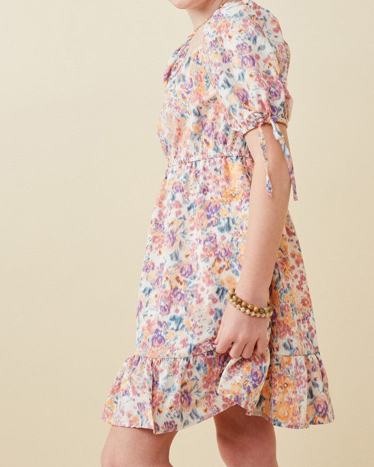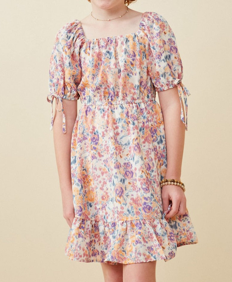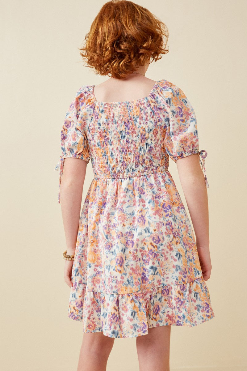 Girls Floral Cinch Waist Smocked Back Dress *Floral Woven Fabric *Cinch Waist *Smocked Back Detail