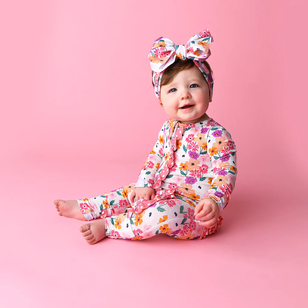 This beautiful headwrap is the perfect accessory for your sweet baby! Made from bullet fabric, a poly/spandex blend, it is super soft and stretchy!