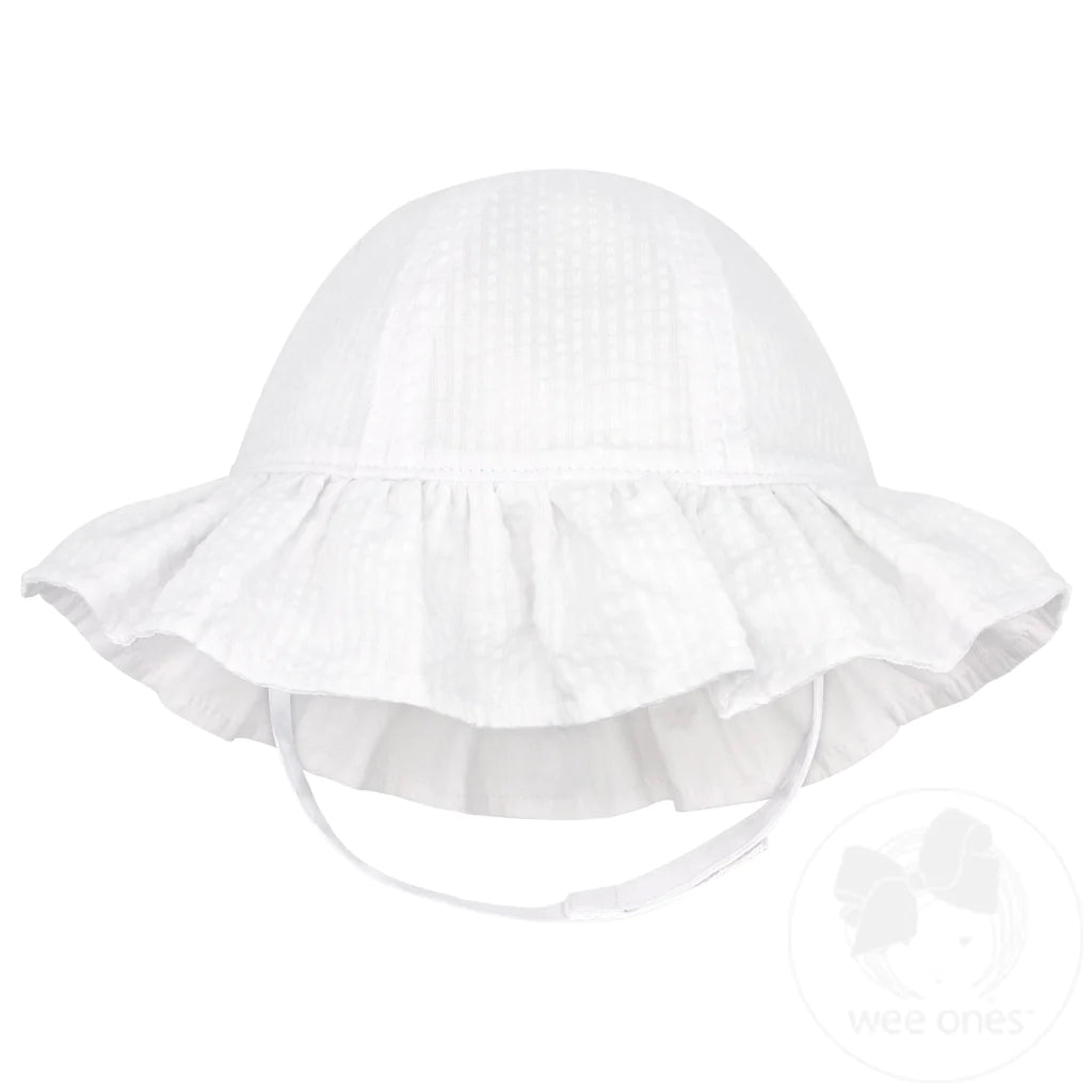 Reversible Ruffle Brim Seersucker Sun Hat in White