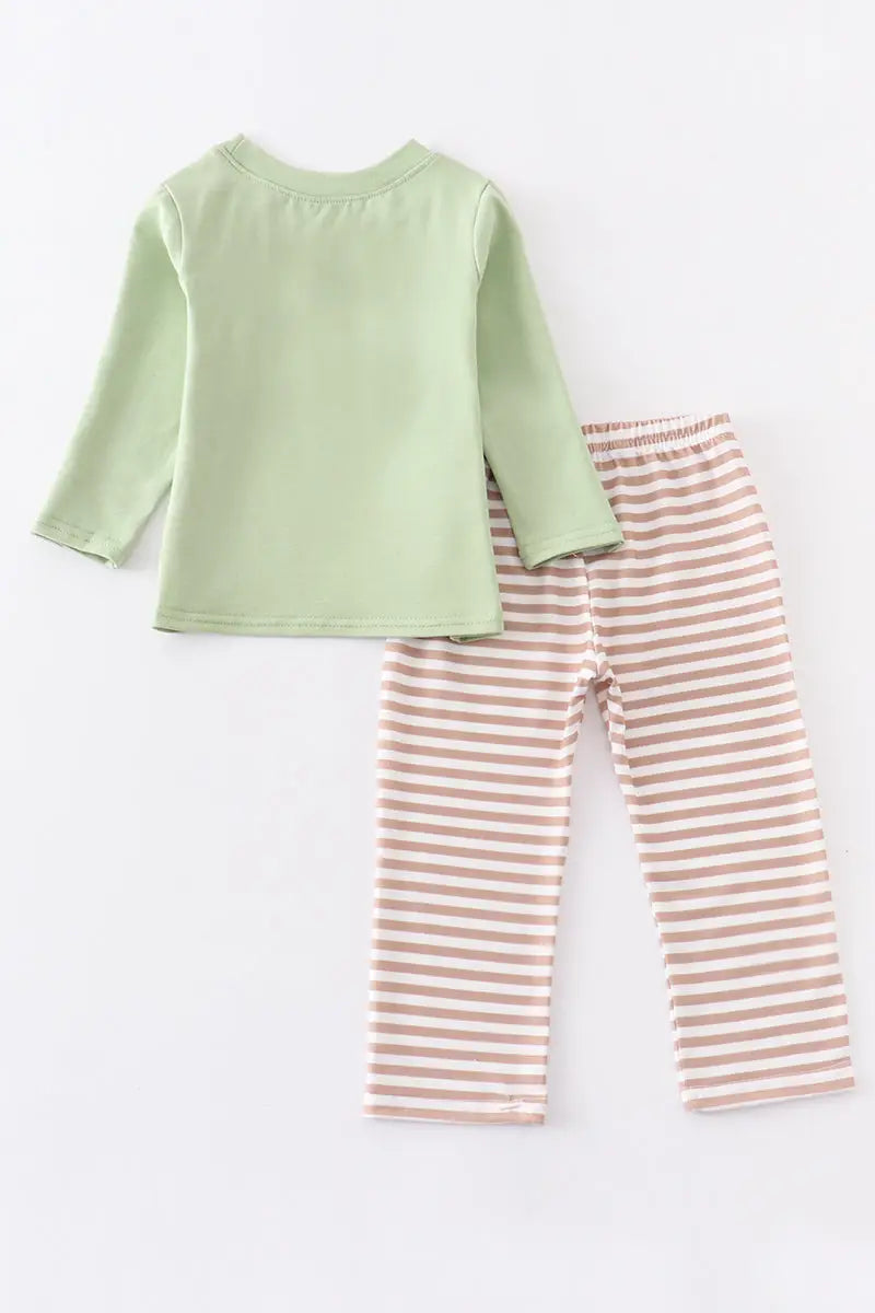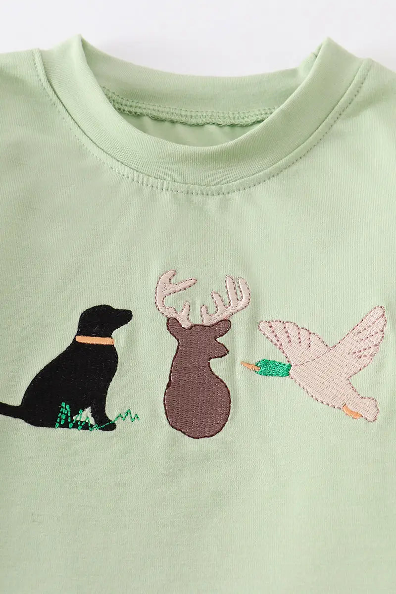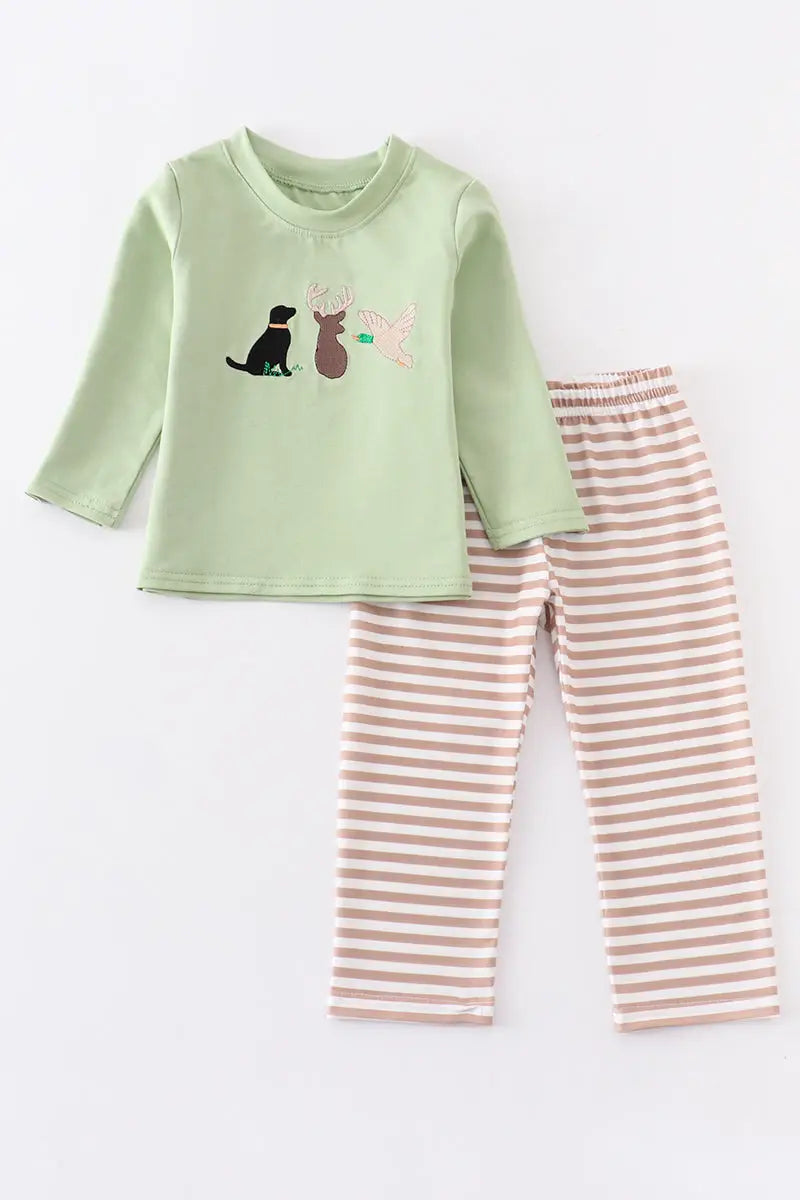 Two Piece Green Hunting Boy Set with Applique.