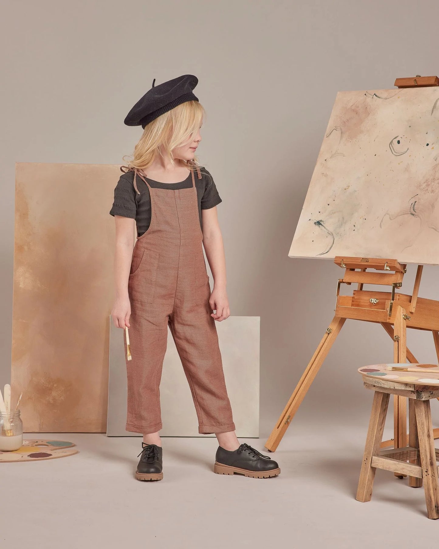This relaxed cropped jumpsuit has adjustable straps, front pockets, and will be an easy go-to this fall!