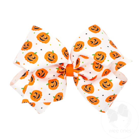 Enhance any spooky ensemble this Halloween with this festive printed grosgrain hair bow. Featuring carefully crafted Halloween designs adding a unique, stylish touch. This bow is sure to stay in her hair all day with our patented WeeStay™ no-slip hair clip.