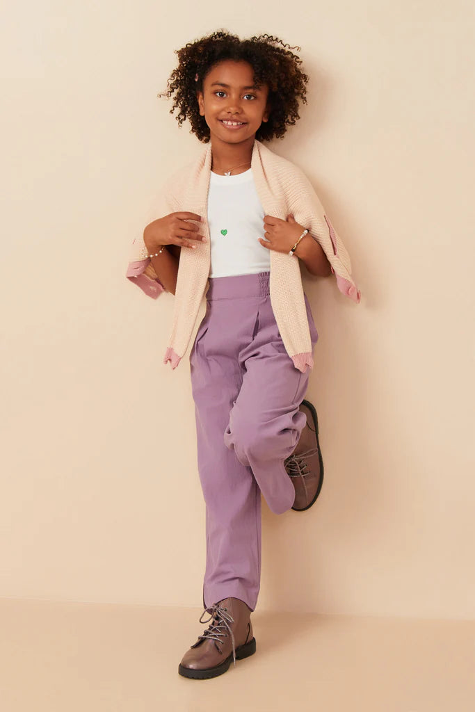 Lavender Smock Waist Pleated Wide Leg Pants