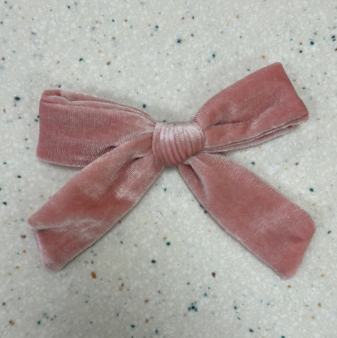 These velvet bows are the perfect accessory for any little lady! Each bow can be attached to an alligator clip or nude nylon headband. Each bow is hand-tied.