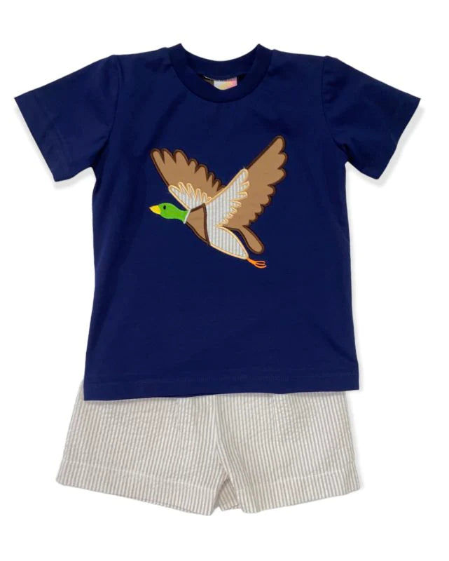 We are in love with this Mallard applique boys short set. The tee is soft and the shorts are a perfect match. This is a must have for every little boy!