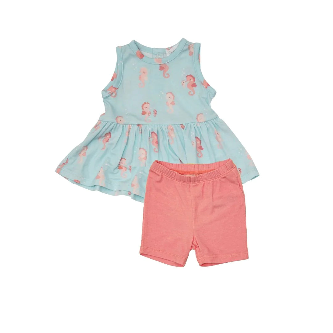 Peplum Tank and Biker Short in Baby Pink Seahorses