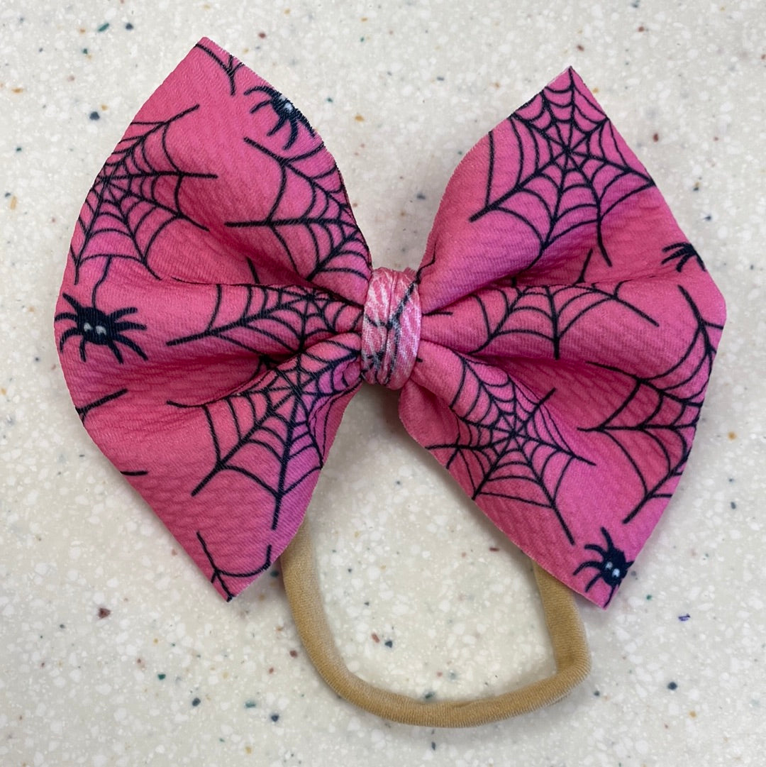 Hand tied bow on thin nylon band. Bow measures approximately 5”. Locally made!