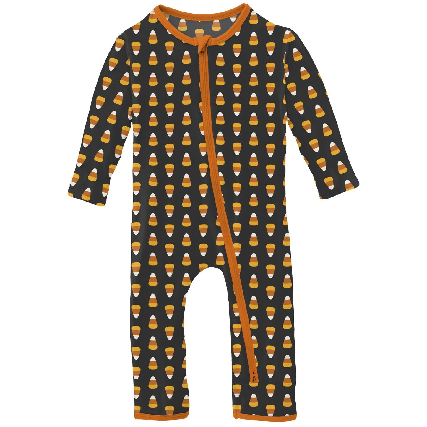 Print Coverall with Two Way Zipper in Midnight Candy Corn
