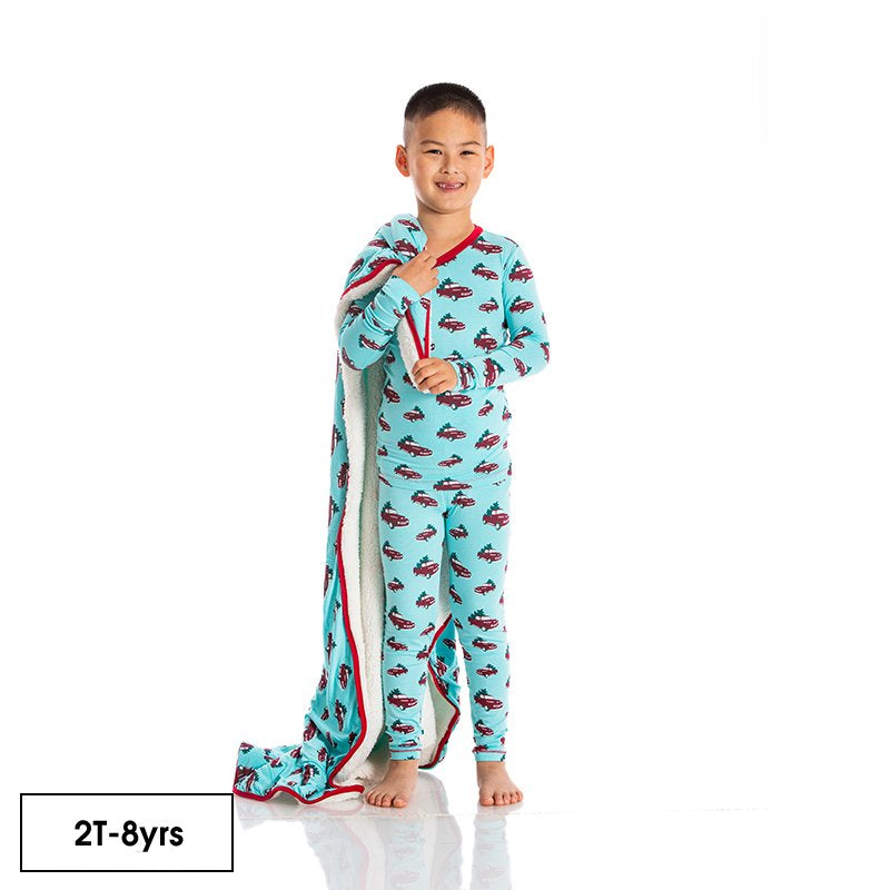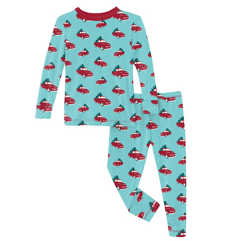 Print Long Sleeve Pajama Set in Iceberg Trucks and Trees