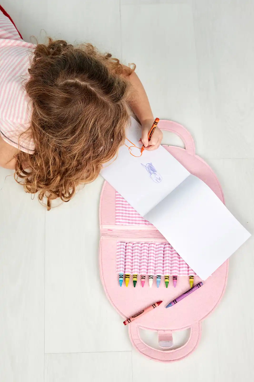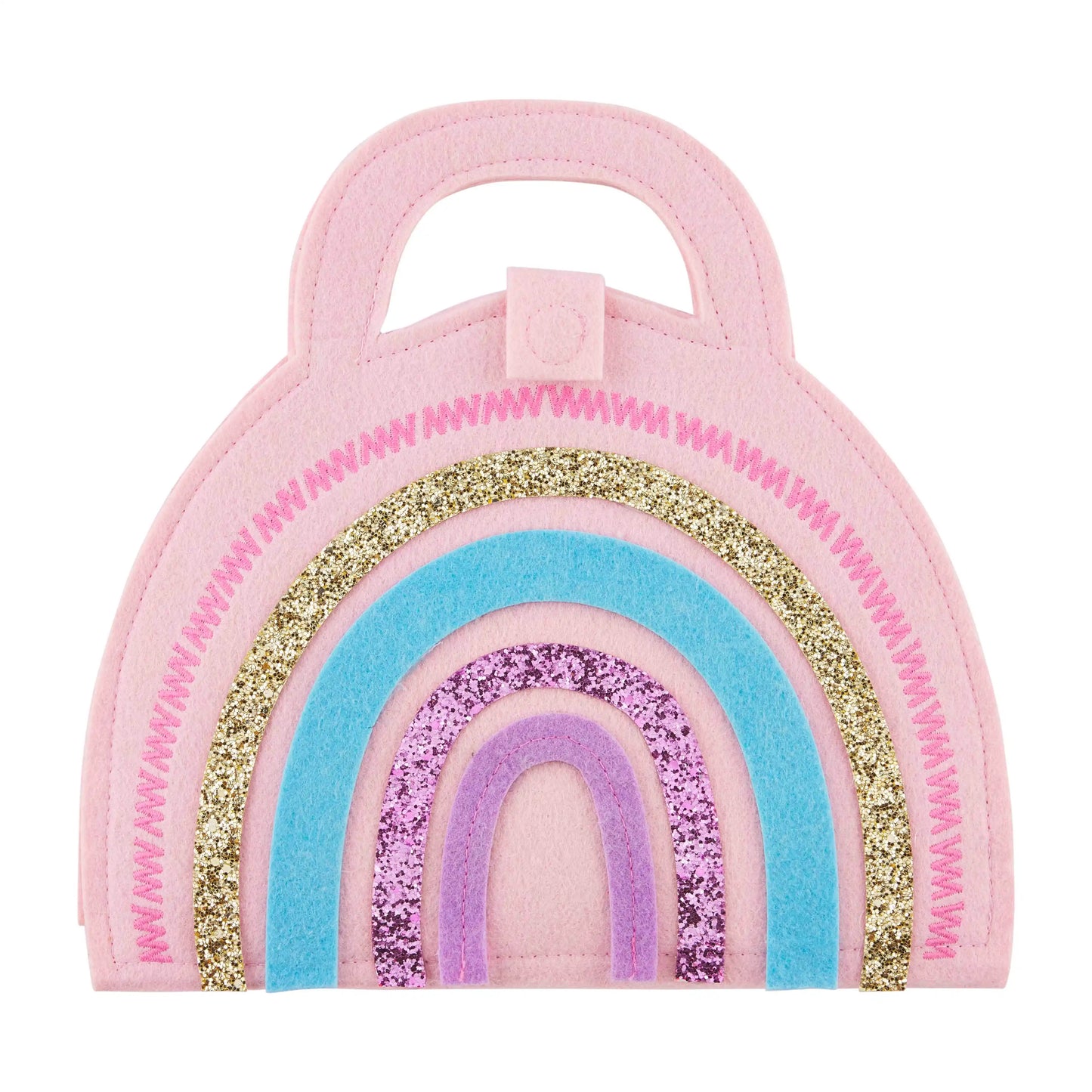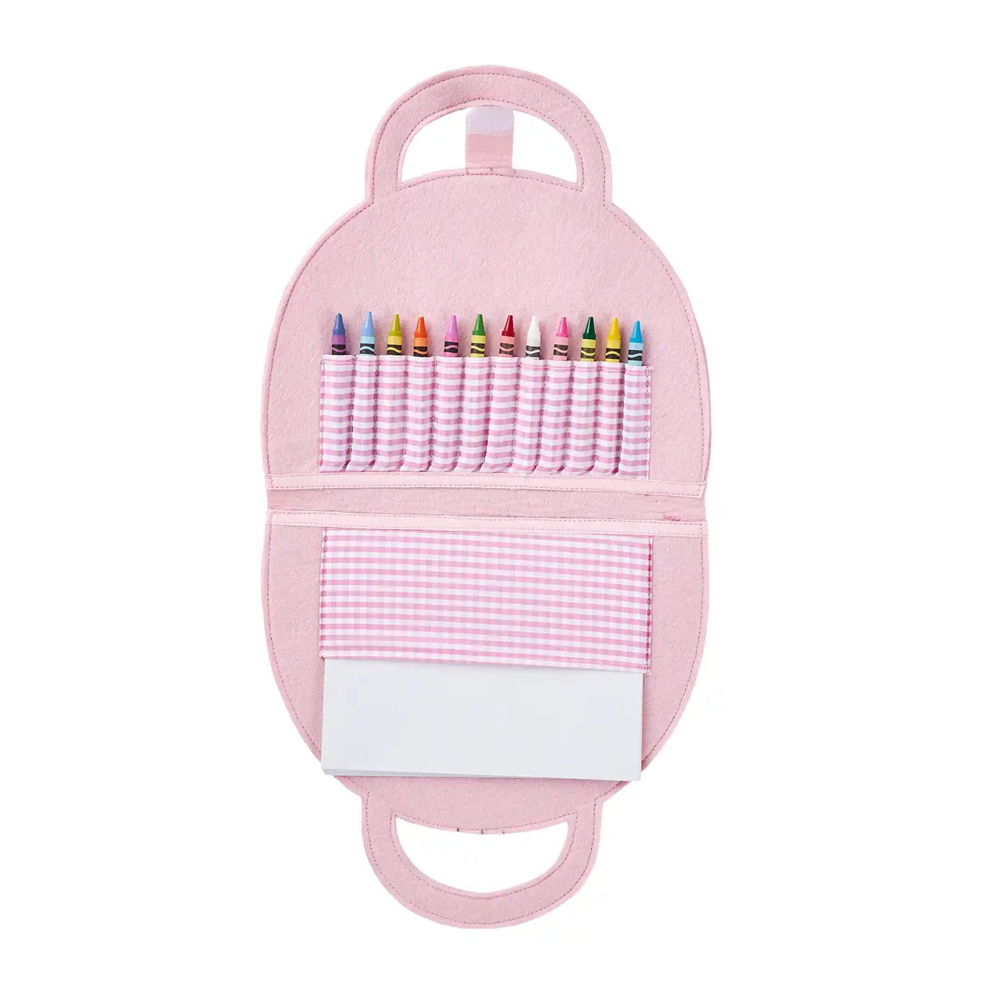 Color anywhere with this adorable Rainbow Art Folio Set. The set comes with a felt portfolio that is shaped like a rainbow. The folio includes a drawing pad and 10 crayons of fun colors. This set is perfect for on-the-go entertaining. The art folio is intended for children ages 3 and up.