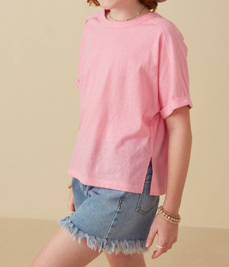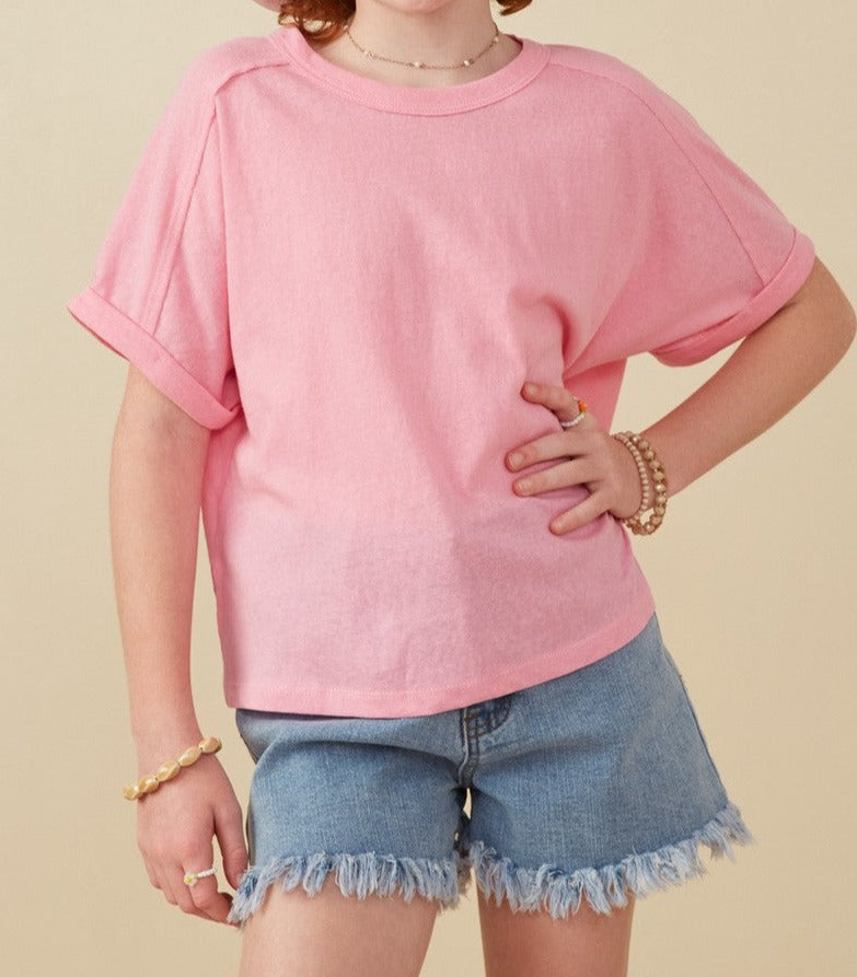 Raw Edge Dolman Tee in Pink