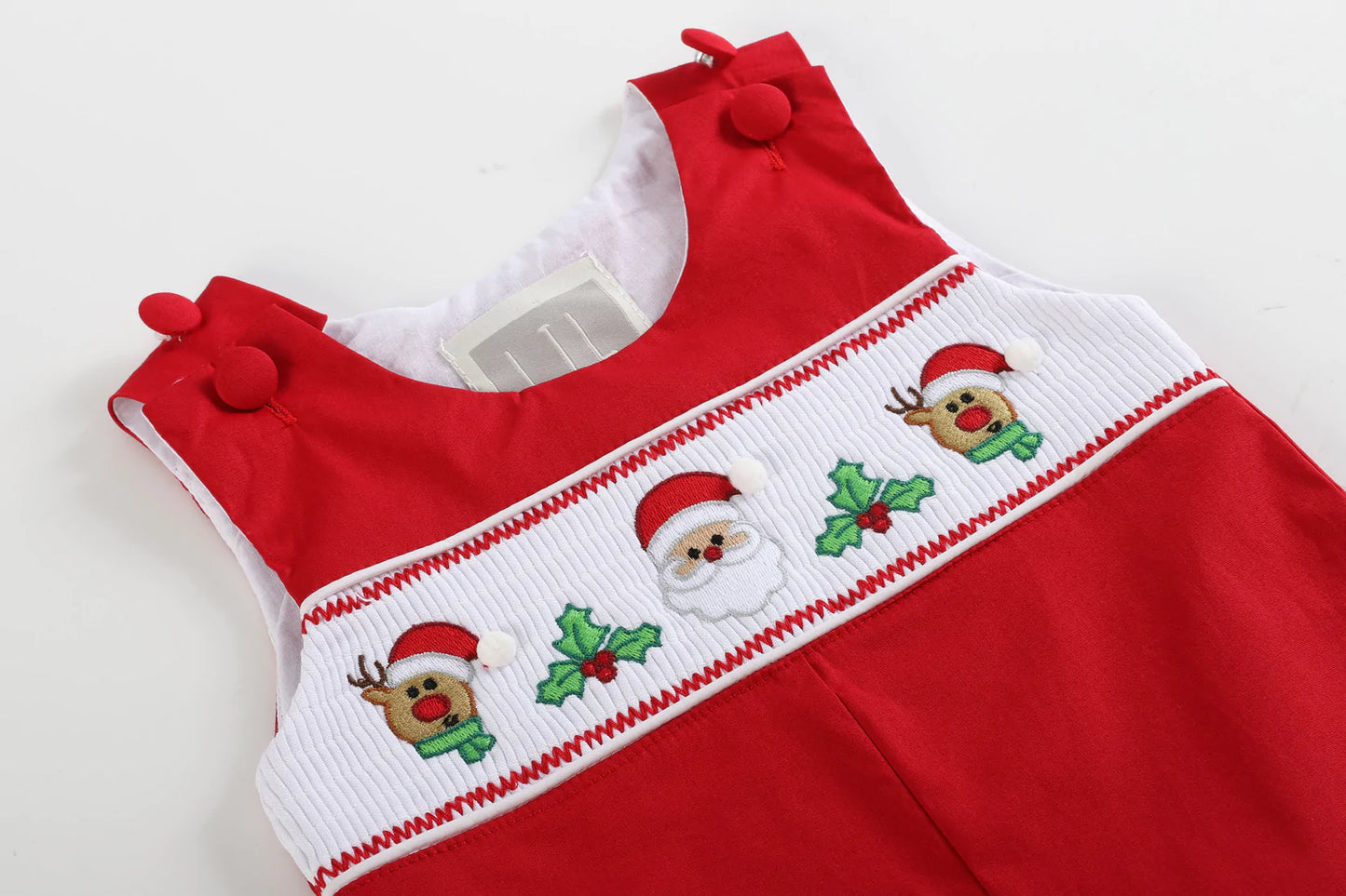 Bursting with Festiveness! Your little boy will be irresistible in this updated and adorable one-piece. Features 100% soft cotton fabrics that are comfortable and lightweight. The charming embroidery on the smocking is sure to make your cutie smile and ready for all of your Christmas festivities.