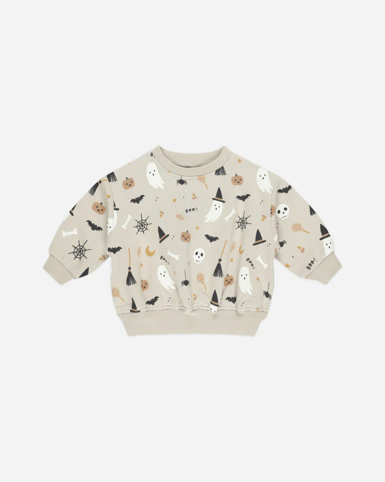 Relaxed fit sweatshirt made of the coziest fleece fabric. This sweatshirt has gathered knit cuffs and bottom opening.