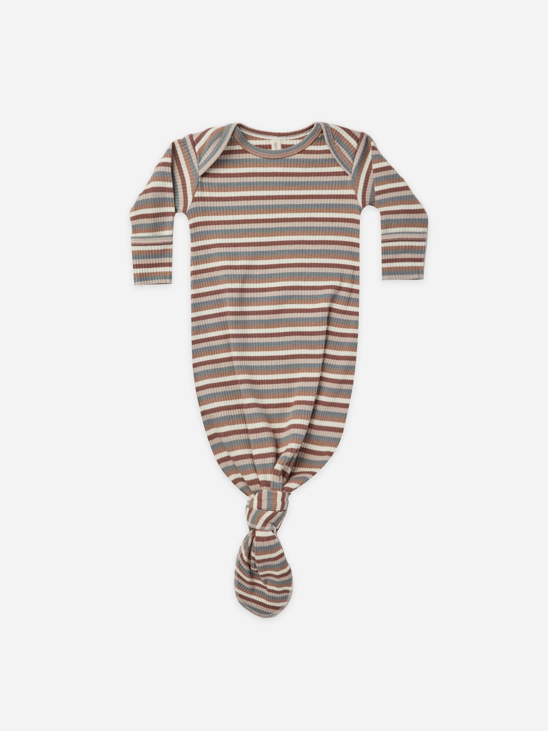 Ribbed Knotted Baby Gown in Autumn Stripe