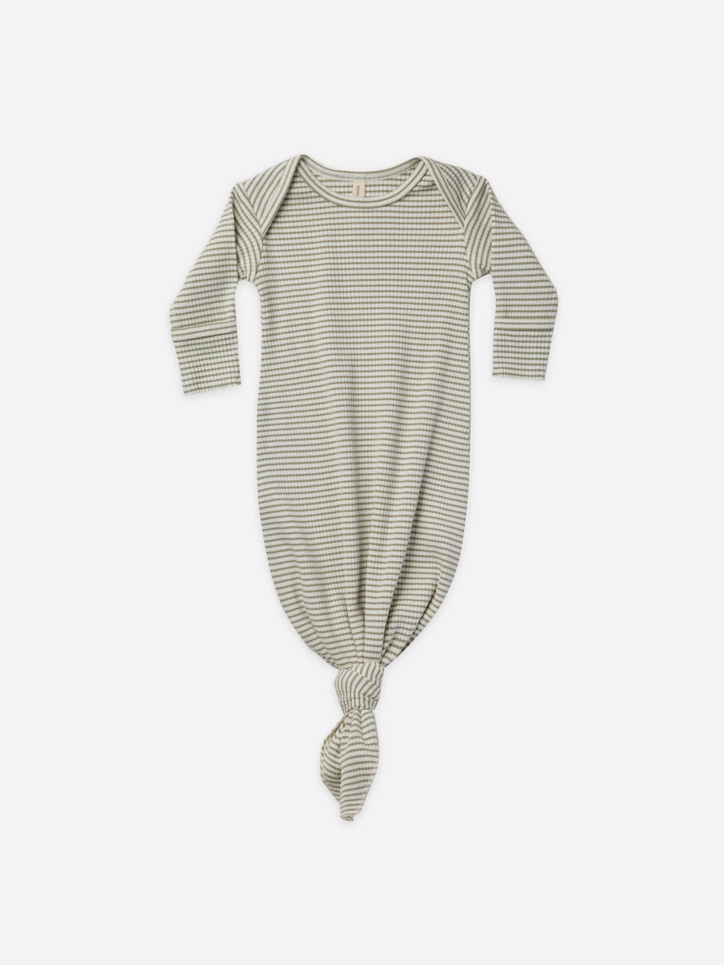 Knotted baby gown in our stretchy rib knit with foldover hand mitts.