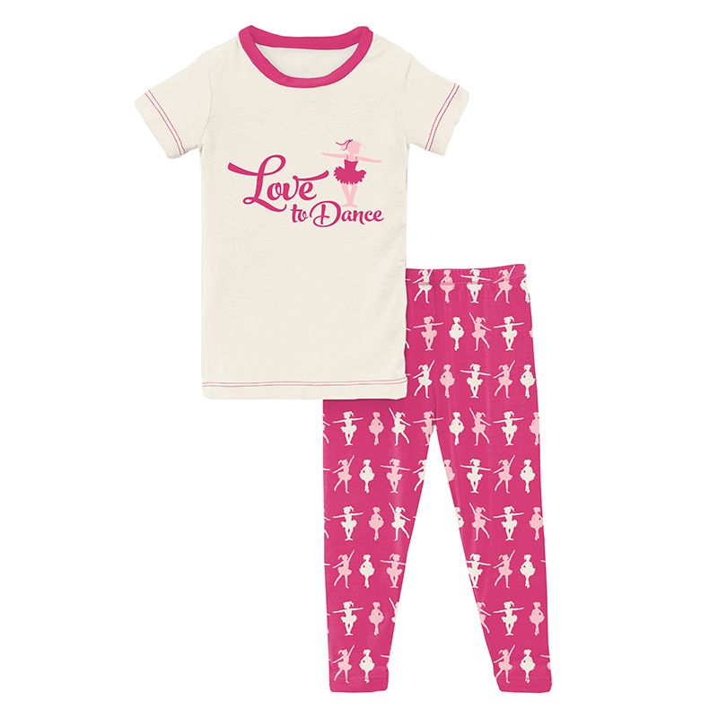 Short Sleeve Graphic Tee Pajama Set in Calypso Ballerina