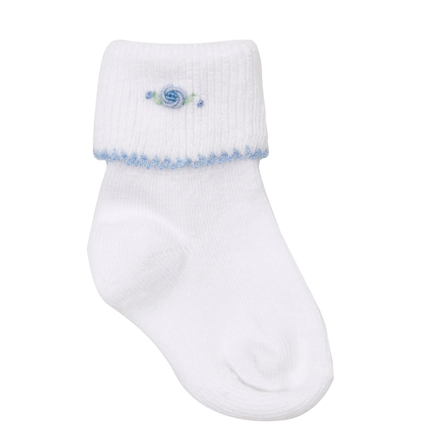 Cuff socks with embroidered flower and crochet trim