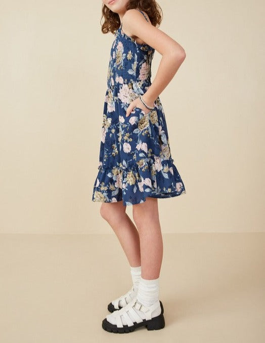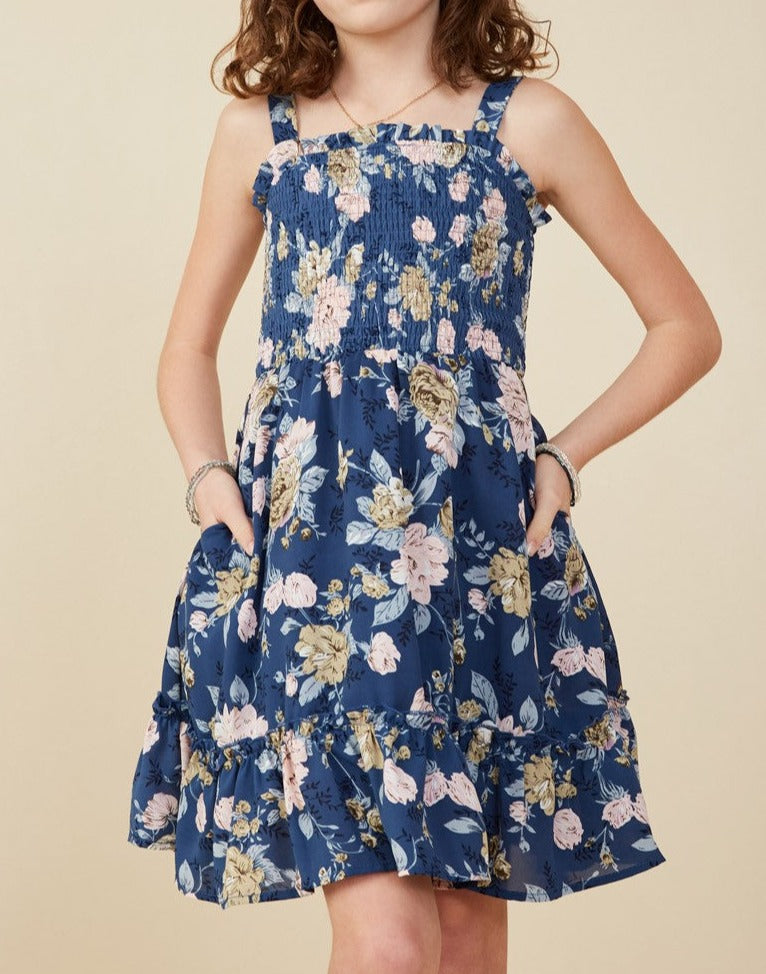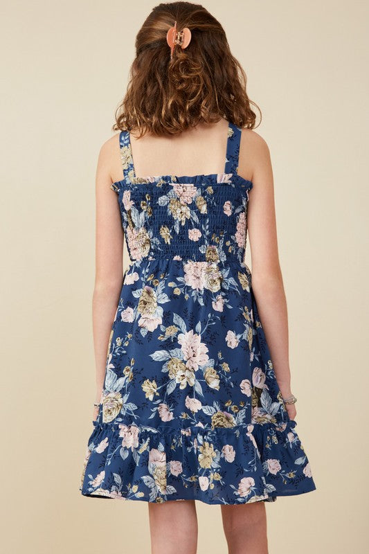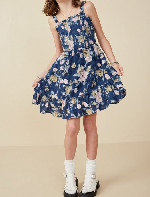 Girls Romantic Floral Smocked Bodice Tank Dress *Romantic Floral Fabric *Square Cut Neckline *Smocked Bodice