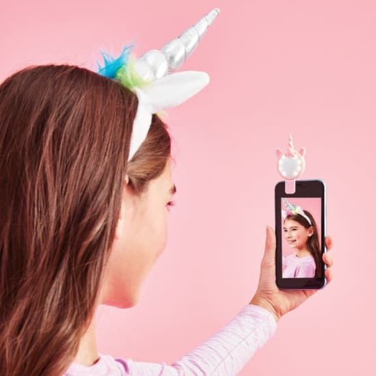 Take magical selfies with our unicorn selfie light. The small, rechargable light clips right onto your phone to make sure you get the best selfie ever. Perfect for gift giving, your friends will have to have one too.