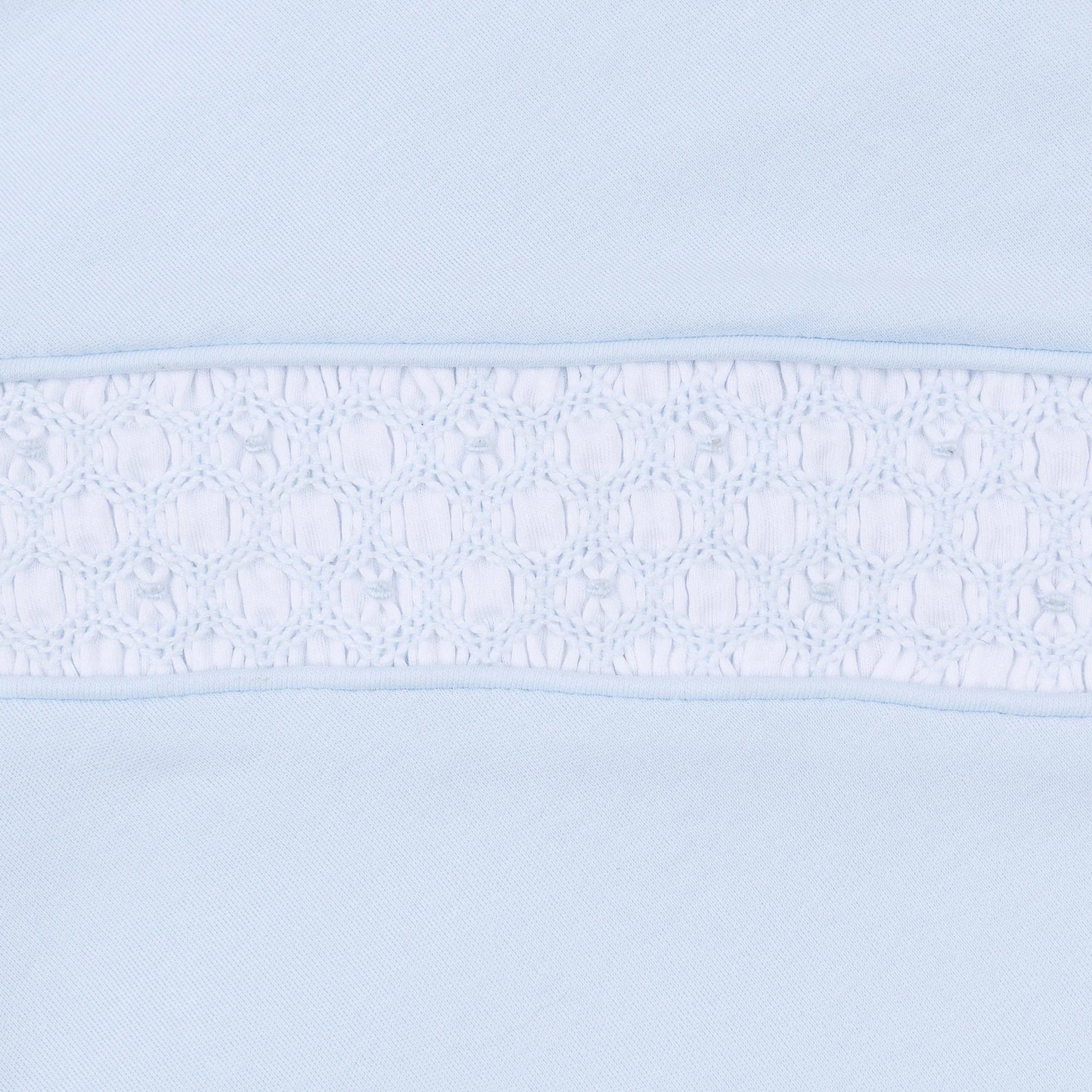 The Walker’s Classics Smocked Playsuit in Light Blue by Magnolia Baby captures timeless Southern charm with every stitch. Made from the softest 100% Pima cotton, this heirloom-quality playsuit features hand-smocked detailing and delicate embroidery across the chest for a refined, classic look. Perfect for everyday wear or special occasions, it offers the perfect blend of comfort, craftsmanship, and elegance—true to Magnolia Baby’s signature style.
