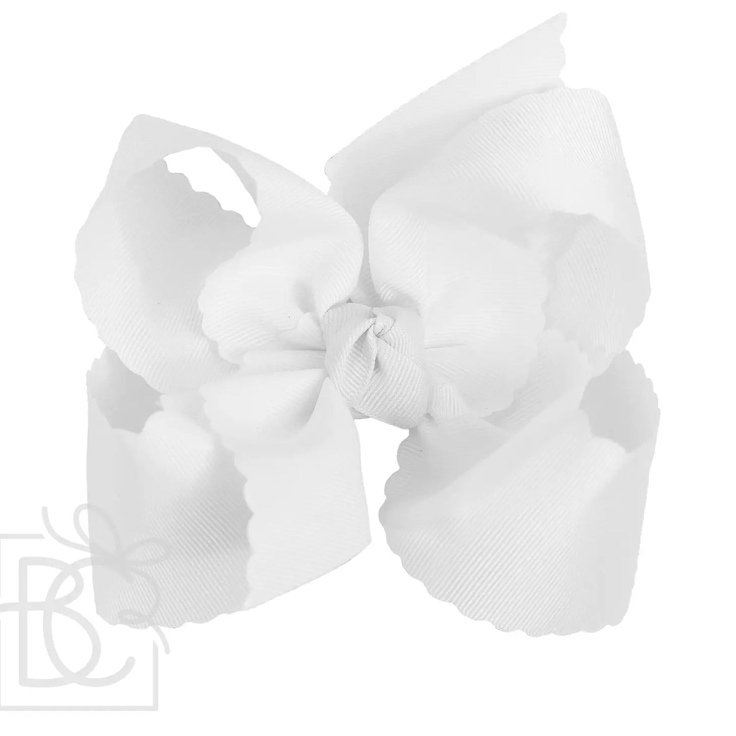 Scalloped edge bow. 5.5" bow with 2.25" ribbon on alligator clip