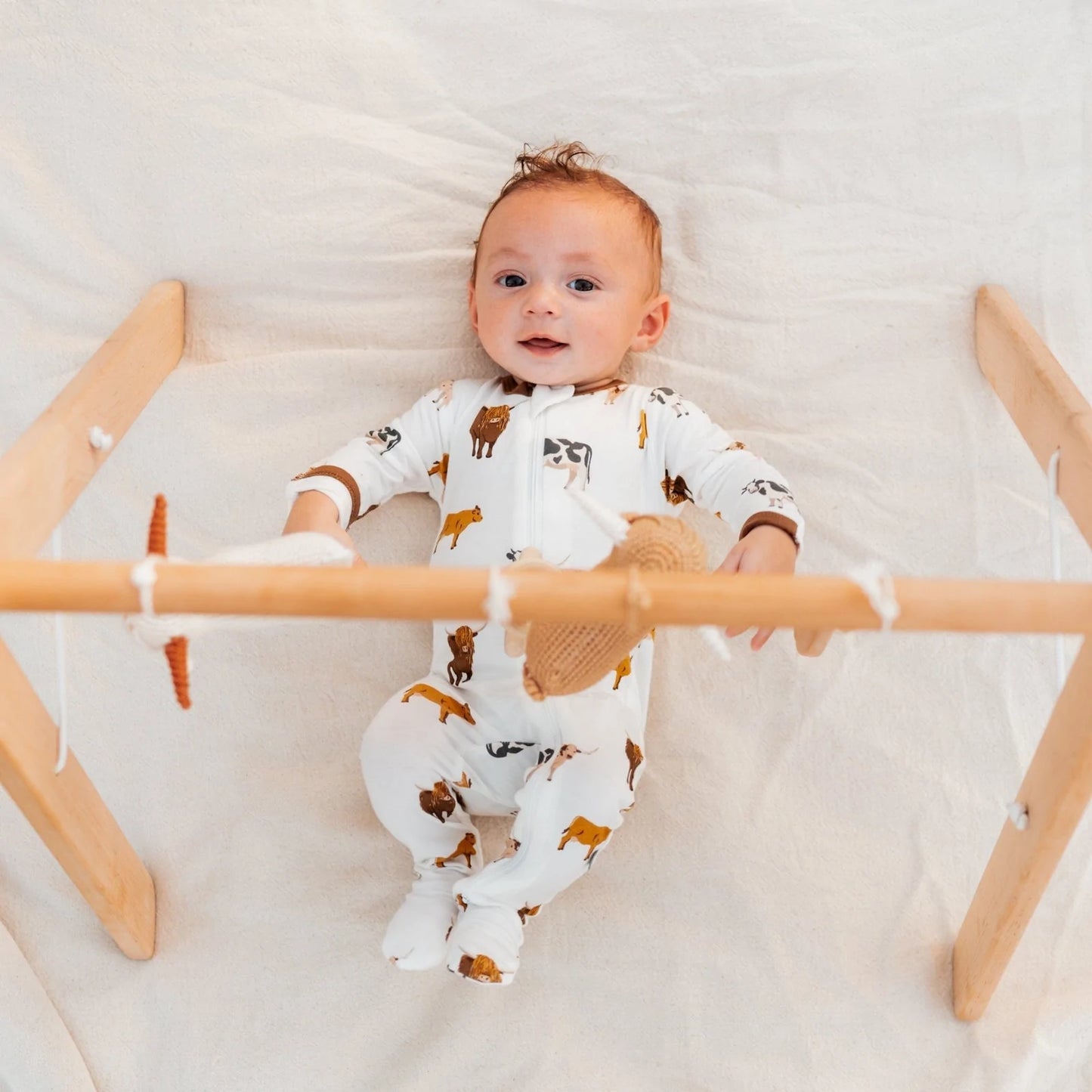 Cut from our silky smooth Rayon made from Bamboo, these soft and snuggly footies come in a rainbow of modern, earthy colors. The stretchy material gives you the option of a snug or looser fit, while keeping baby comfortable and stylish.